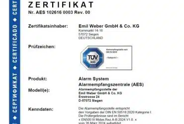 Zertifizierte Alarmempfangsstelle gemäß europäischer Norm für Notruf- und Serviceleitstellen.